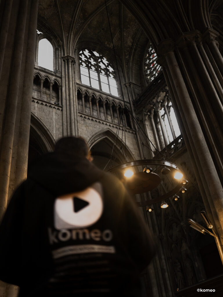Filmer un événement dans la Cathédrale Notre-Dame de Rouen n’a rien d’un tournage classique. Dès l’entrée dans le lieu, une évidence s’impose : ici, rien ne pourra être contrôlé comme d’habitude.